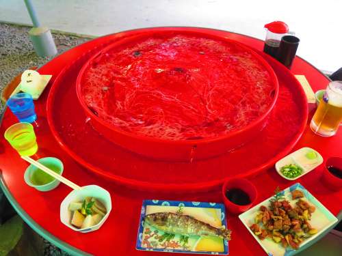 (桜島をイメージして作られた。そうめん流し機)