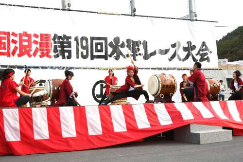 レースの合間には地元の小學生による「能島水軍太鼓」などの 郷土蕓能披露も行われ、夜は花火大會も行われます。