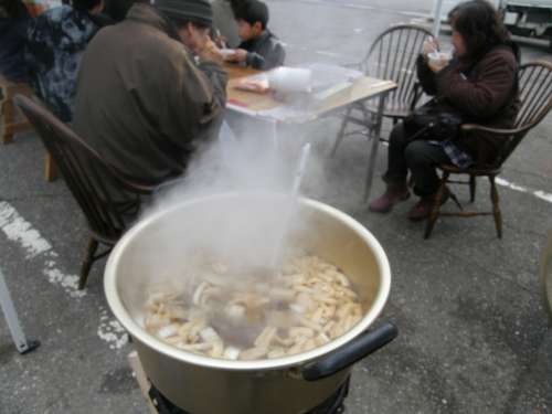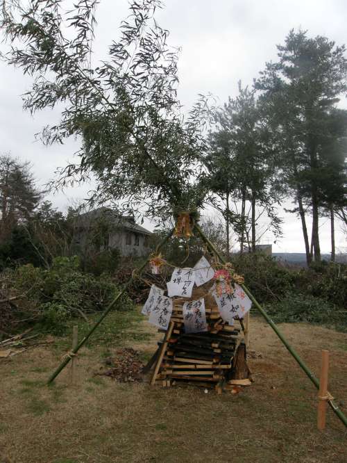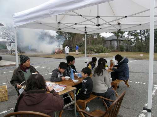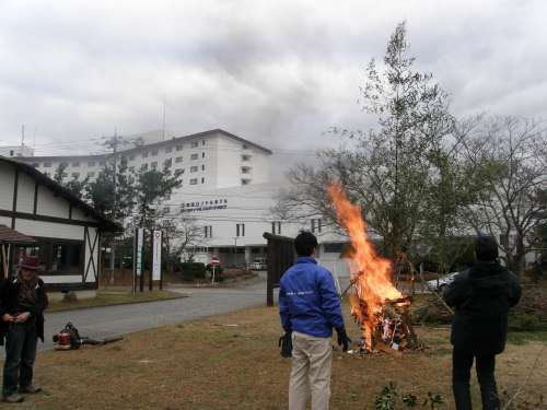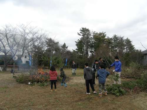 里山景観創(chuàng)出デーで集めた枝も火の中に入れました。