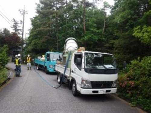 皆様が巡回員の先導で、分譲地內に薬剤を散布しました。