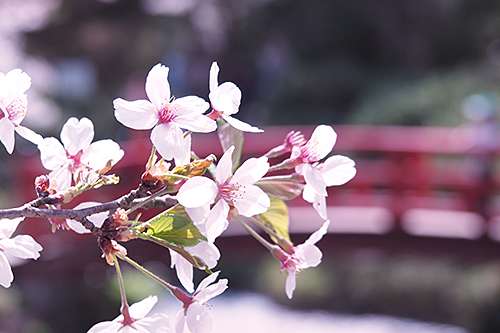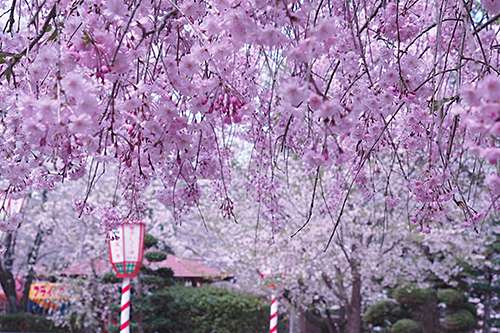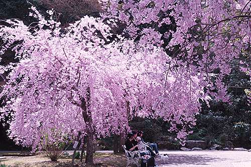 園內にはソメイヨシノ、シダレザクラを 中心とした桜が咲き誇り、 色鮮やかなこちらのシダレザクラも、 思わず足を止め見入ってしまうほどの美しさでした。