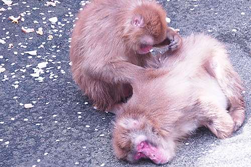 お猿さんも桜が舞い散る中、 毛づくろいをされ、 とっても気持ちよさそうにしていました。