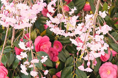 隨所で桜とツバキの共演を楽しむことができました。