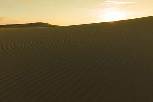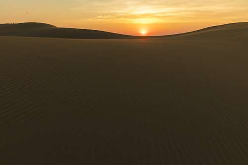 夕暮れの砂丘。 夏の灼熱のイメージが 大きい鳥取砂丘ですが、 実は一番の美しさを観れるのは 日沒間際の10分だったりします。 まさにオリエンタルであり、 ノスタルジック。 風が描き出すアートとともに、 浮かび上がる砂の世界を存分にご堪能ください。