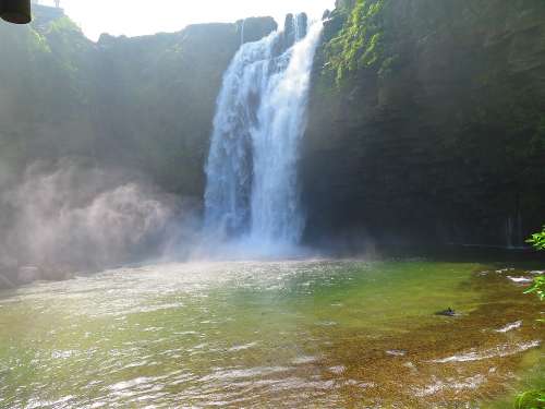 霧島市內には「丸尾の滝」?「犬飼の滝」など観光名所の滝がありますが、今回は「西郷どん」のオープニングで放映された「雄川の滝」行ってきました。 ロイヤルシテイ霧島妙見臺、霧島高千穂リゾートランドからは遠方になりますが、道中には「道の駅」や地元ならではの物産を販売しているお店などがあるので、行き帰りに立寄ることができます。 「雄川の滝」入口の道は狹くなっていて、車が対面走行するのが大変な場所がありますので注意して下さい。 雄川の滝の駐車場から自然歩道を歩いて展望臺に向かいます。 展望臺から見る滝は、テレビと違い「迫力満點」です。 自然遊歩道は整備されていて歩きやすく、道中にはベンチなども用意されています。 ロイヤルシテイ霧島妙見臺、霧島高千穂リゾートランドへお越しの際は少し足を伸ばして見に行かれては如何ですか。 ①雄川の滝 入口です。ここから遊歩道を歩いて行きます。 ②遊歩道の途中から綺麗な清流が見れます。平日なのに多くの人。 ③マイナスイオン発生裝置「雄川の滝」(展望臺より) 〇霧島高千穂リゾートランド 約101km 〇ロイヤルシテイ霧島妙見臺 約96km