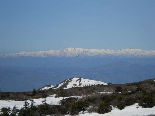 これは、お釜近くのレストハウス周辺から眺めた、山形の朝日連峰の山並みです。