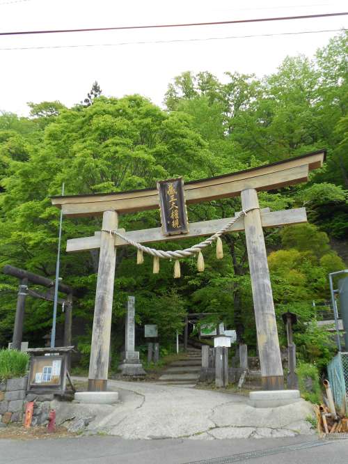 さて、「小さな戀のメロデ?!工悉趣猡?、若葉の探索に出かけましょう。 遠(yuǎn)刈田溫泉街に鎮(zhèn)座する、「刈田嶺神社」の鳥(niǎo)居を、柔らかな木々の緑が囲んでいます。 優(yōu)しい緑の中、いつもより気持ちよくお參りできそうです。