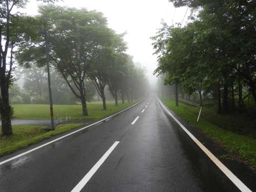 寫真はロイヤルシティ宮城蔵王リゾートの、Ⅲ期分譲地の中央を走る県道から蔵王方向を眺めた景色。正面には蔵王のお山があるのですが、シトシト降る雨が煙っており、見ることができません。