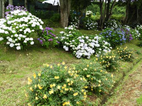 先日、ActiveRizorts宮城蔵王の敷地內を通ったら、お客様駐車場の植え込みの中に、思いのほか多くの紫陽花が植えられているのに気づきました。この場所の紫陽花は青一色で、紫や赤いものはなく、スッキリした印象でした。
