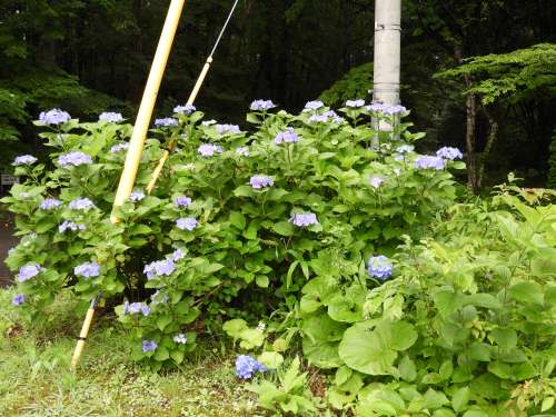 紫陽花という花は、たぶん日本全國どこででも咲いているのでしょうし、珍しい花ではありません。全國には紫陽花の名所と言われるところも多々あるようです。 仙臺では、伊達政宗公ゆかりの「資福寺」というお寺が、あじさい寺として有名です。蔵王町でも、梅雨どきのこの季節、町のあちこちで紫陽花を見かけます。ロイヤルシティ宮城蔵王リゾートⅠ期の道の曲がり角付近に、電柱を囲むようにして咲く、紫陽花がありました。特に目を引くこともない、この季節の景色の一部になっています。