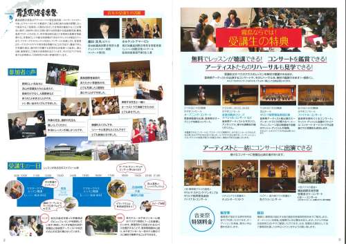 音楽祭に伴い、音楽家から直接にレッスンを受けることが出來る受講生の募集を5月8日まで行っています。レッスンだけではなく、アーティストのリハーサル見學(xué)、一緒にコンサートに出演出來るなどの特典があります。霧島高千穂リゾートランド?ロイヤルシテイ霧島妙見臺(tái)へお越しの際、自然の中で音楽を楽しまれては如何ですか。