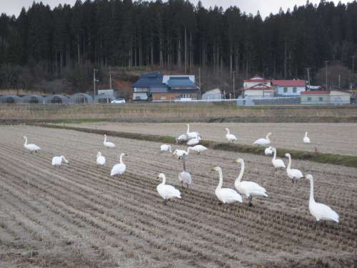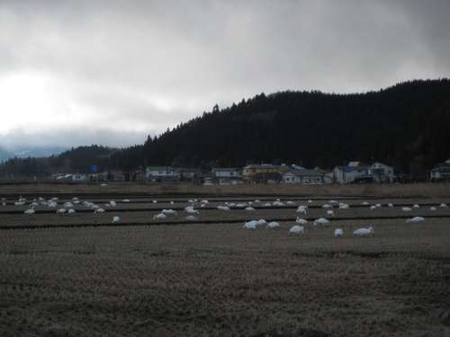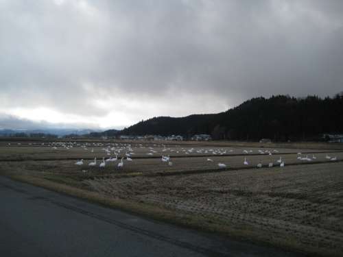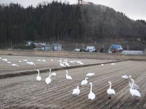 白鳥は稲の収穫の際落ちた『お米付きのもみ殻』『二番穂』を