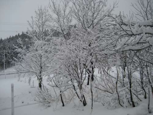 降雪。それどころか、現在16時30分時點でまだやまず。