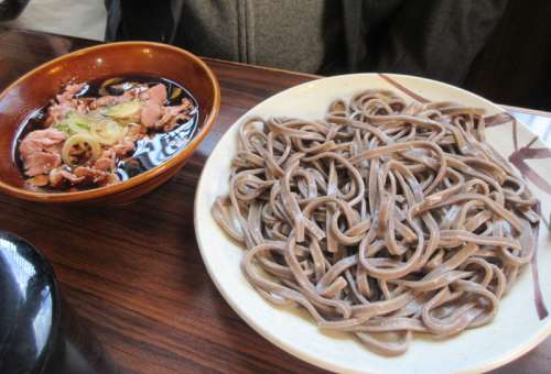 ■私が好きな「鴨蕎麥」 もちもちした太めの十割蕎麥の中に鴨肉とたっぷりの野菜が入っており、頂くと心から溫まるお蕎麥です