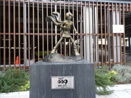 東日本大震災で被災した東北の沿岸部では、宮城県だけでなく、復興公園などとともに、復興商店街なども各地で続々とオープンしています。こちらは被災地のひとつ、宮城県石巻市の復興商店街「いしのまき元気いちば」付近にあるモニュメントです。石巻市ゆかりの漫畫家である、石ノ森章太郎の人気マンガ、ご存知「サイボーグ009」。石巻ではここだけでなく、市內のあちらこちらでいろいろなキャラクターに會うことができます。ところで、「サイボーグ009」に関してはあまり熱心な読者ではなかった私は、このモニュメントを見て初めて、このキャラクターの名前が「島村ジョー」だと知りました。今さらですが、石ノ森先生、大変申し訳ありません。