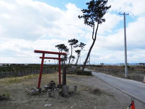 3.11関連の話題の時にご紹介した、仙臺市の震災遺構「荒浜小學校」付近の慰霊碑そばに立つ、鳥居と松並木です。実は、津波に耐えたのは、松並木だけではありません。津波が去ったあと、この鳥居も持ちこたえていたのだそうです。波そのものをやり過ごすことはできても、波に渦巻く多數の瓦礫から、よく破壊されなかったものだ、まさに奇跡だ、とつくづく思います。 このしたたかさと運の強さにぜひあやかりたいと思うのは、私だけではないでしょう。