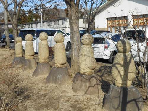 こちらは、宮城県の溫泉では一番人気の「秋保溫泉」観光案內所入り口に立つ、可愛らしいお地蔵様6體です。6人ともそれはそれは楽しそうな優しいお顔をされているんですよ。秋保溫泉は、仙臺と蔵王のちょうど中間地點あたりに位置しています。観光でおいでの場合は、秋保溫泉と遠刈田溫泉に1泊ずつというのもいいかもしれませんね。