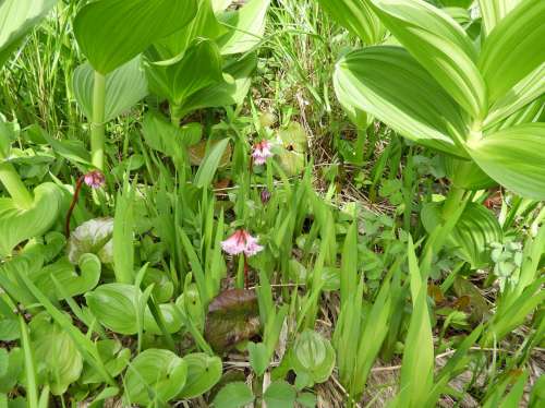 色こそきれいなピンクですが、うつむきながら靜かに咲いています。お花畑全體にたくさん咲いてはいるのですが、あまりに奧ゆかしすぎて目立ちません。平安時代のお姫様のようです。「イワカガミ」の名前の由來は花ではなく、ツヤツヤとした葉っぱ。巖場の鏡のようだというところから名付けられたそうで、鏡のように忠実に映すところから花言葉が「忠実」と決められたんだとか。