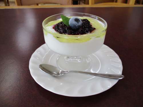 ※寫真はブルーベリーヨーグルトです プレーンヨーグルトの上に自家製ジャムとはちみつが掛けてあります。 ヨーグルトの酸味がジャムの美味しさを引き立たせてくれてます