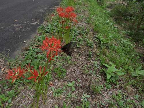 再び彼岸花に目をやると、クロアゲハが花から花への行ったり來たり、を繰り返していました。近づくと逃げますが、またすぐに戻ってきます。どうも、彼岸花がお気に入りのようです。溫泉街やActiveRezorts宮城蔵王はお客様で賑わっていますが、別荘地であるリゾート內では、秋が靜かに深まりつつあります。