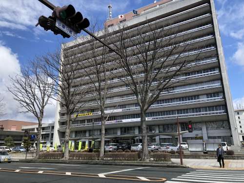 県庁の西側は「巖手県議會議事堂」その奧は「盛岡地方裁判所」