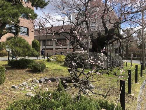 隣りにはおそらく梅でしょうか?咲いておりました。
