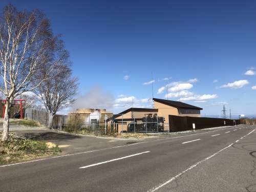 駐車場(chǎng)向かいには地?zé)岚k電所があり蒸気がモクモクとで続けてます