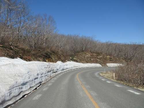 ■進むにつれて標高が高くなり、道路際は積雪もありました