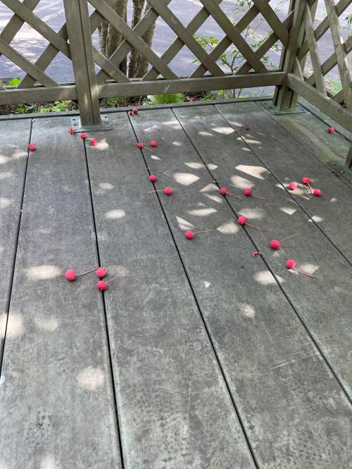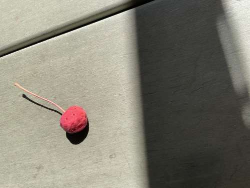 ここ現地販売センターの入口付近に何やら赤い実が落ちています