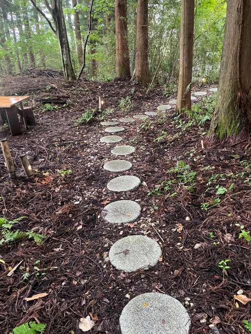 樹のなかの小道も雨で濡れていましたが、歩きにくいこともなくお店にたどり著きました