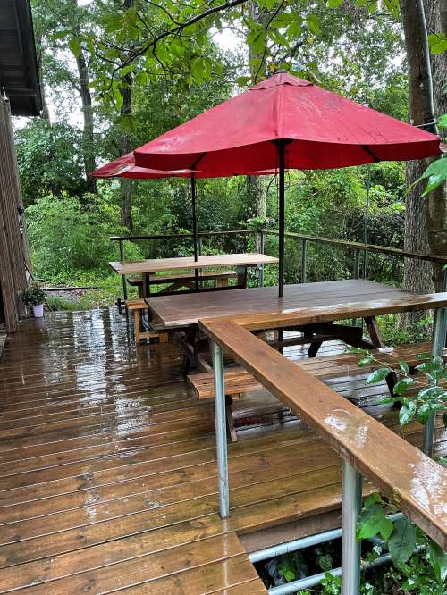ウッドデッキもあり、お天気のいい日には外で食べてもいい感じです
