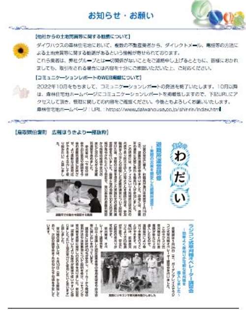 10月以降は森林住宅地ホームページにコミュニケーションレポートを