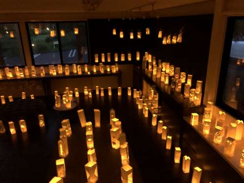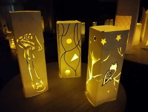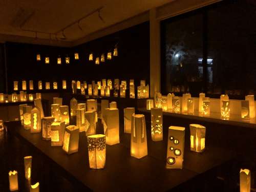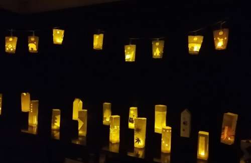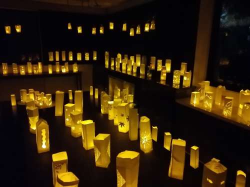 300個以上の牛乳パックランタンに明かりを燈すことができました。