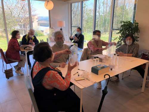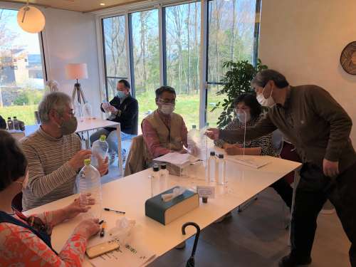 ご講義の後は、ペットボトルに切り込みを入れて捕獲罠づくり。
