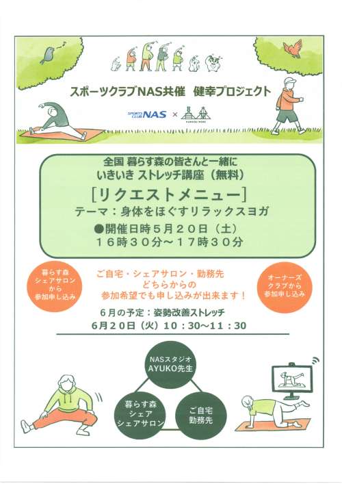 NAS健幸プロジェクトのご案內 5月20日(土)開催
