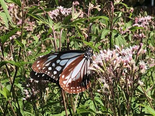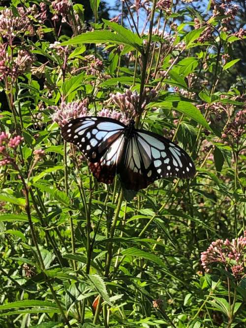 シェアサロン前公園と大成池公園に、飛來してきたアサギマダラを