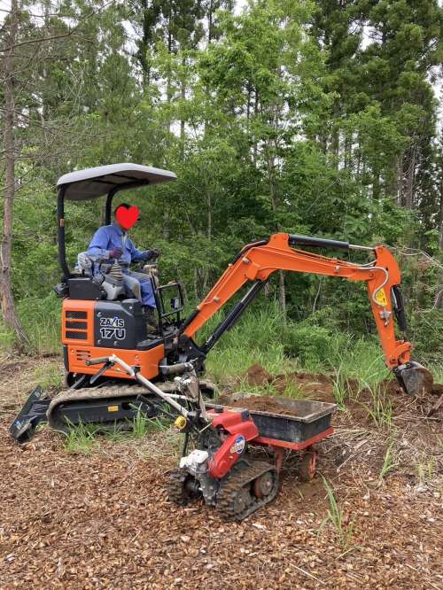 ユンボで荒堀りをして