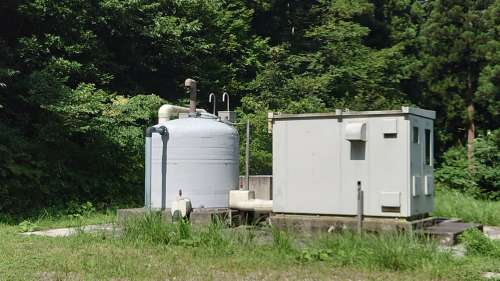 隣にあるポンプから、現(xiàn)在の居住區(qū)內(nèi)にある配湯槽まで送ります。