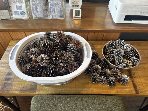 そんな中サロンの周りではまつぼっくりが沢山収穫できました