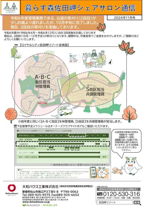 この業務は、オーナー様各區畫の沿道沿いの草刈りを年間3回実施しております。