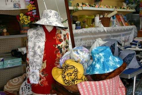 船長(zhǎng)の妹さん?珠美さん手作りの帽子や洋服も販売。
