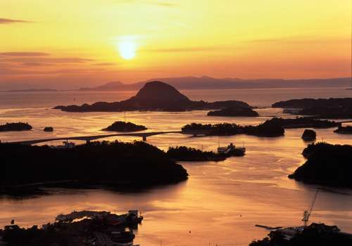 熊本県上天草市?松島町。藍色の海と大小の島の緑、島と島に架かる橋の景色の美しさから宮城県の松島、長崎県の九十九島と並び、「日本三大松島」と呼ばれています