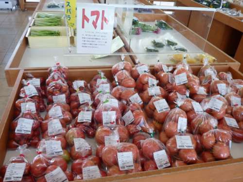 「やはり熊本市內に比べると直接、農家から持ってくる分安いですよとくにトマトはこの量で150円~200円ですので非常におすすめですとの店長のお話。