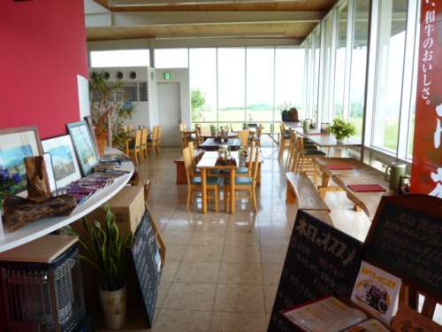 建物內にある阿蘇五岳を一望できるカフェ『青空食堂』でお食事もできます