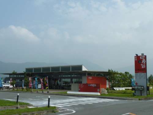 阿蘇の山並を一望できる、絶好の場所に一の宮の野菜や加工品など、特産品が大集合した直売所