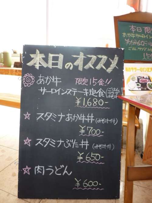 だご汁や高菜飯などの阿蘇ならではの郷土料理はもちろん、店長もよく召し上がられるというスタミナ赤牛丼もお勧めです夏本番にむけてスタミナをつけましょう
