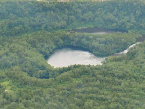 山頂からのぞむ御釜湖と御苗代湖