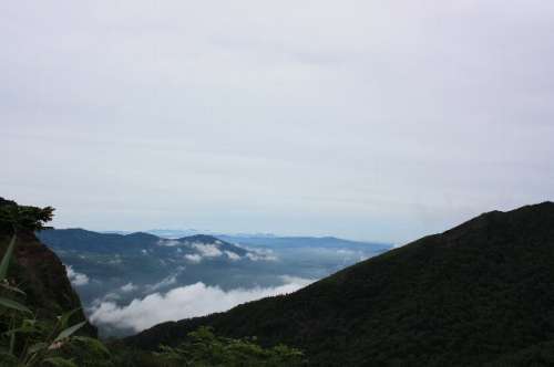 尾根沿いのコース(鬼ヶ城コース)は登山道の両側が斷崖絶壁の険しいコース、ところどころ巖場に両手両足をついて上り下りするような場所もあります。