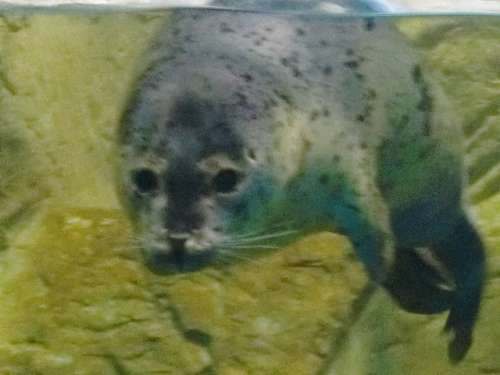 また、5月に六ヶ所村のむつ小川原港で保護(hù)されたゴマアザラシの赤ちゃんも8月26日より公開とあってわくわくしながら入館しました