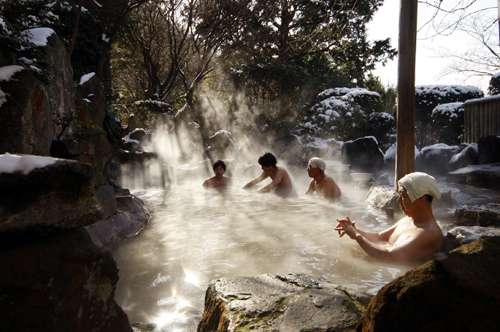 すずめの湯には混浴の露天風呂に8層の浴槽があります。ぬるめから熱めまで、體調や好みに合わせて利用できます